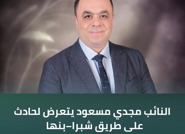 كتب م.محمود الحناوى تعرض النائب مجدي مسعود، عضو مجلس النواب،عن دائرتي بنها وكفر شكر بمحافظة القليوبية، وزوجته ونجلته، اليوم، لحادث…