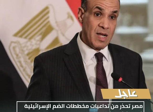 كتب أ.محسن البتانونى أعربت مصر عن إدانتها الشديدة للقرارات الإسرائيلية التي تستهدف تعزيز مخطط الضم غير الشرعي للأراضي الفلسطينية في…